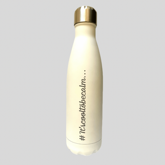 Calm & Chilled Vacuum Insulated 500ml Stainless Steel Water Bottle in White Rubber Finish 500ml. Free Personalisation