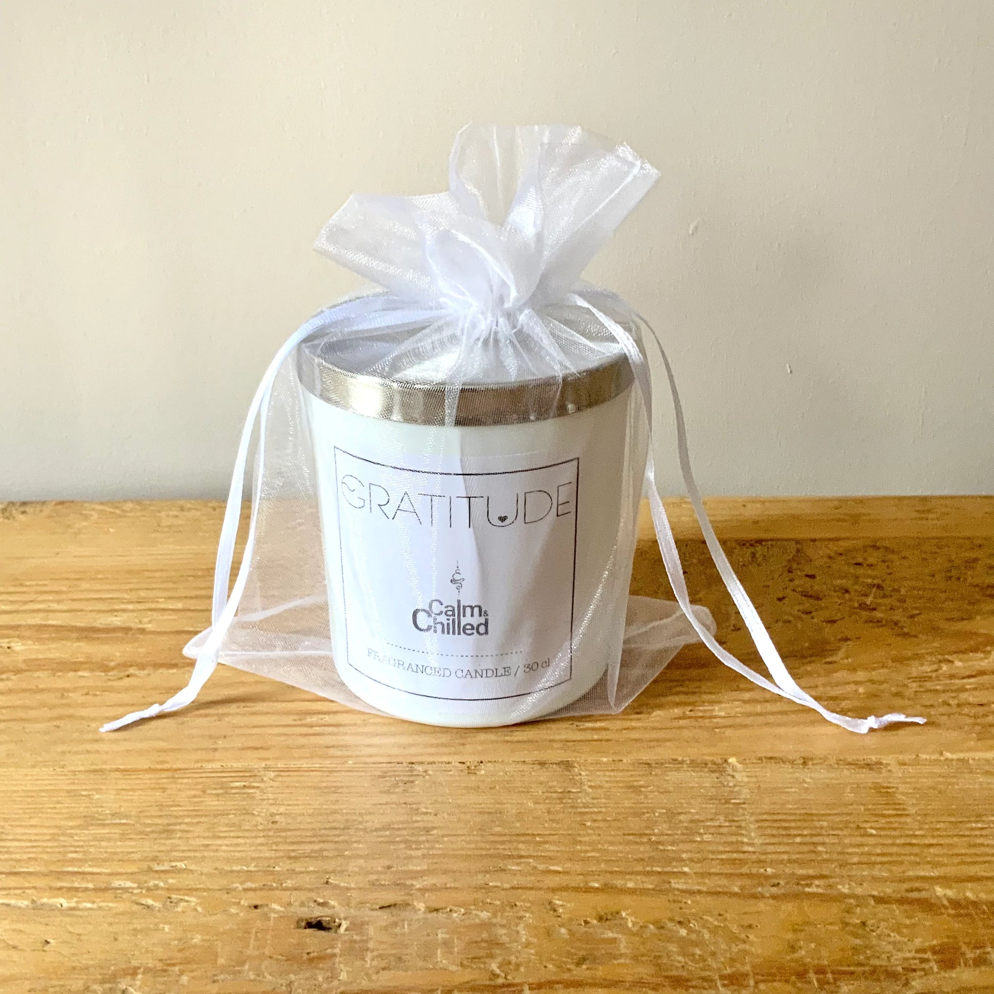 Calm & Chilled Gratitude Luxury Hand poured Scented Candle in White 30cl