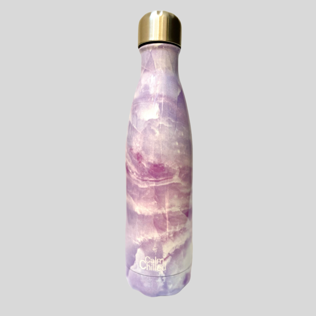 Calm & Chilled Vacuum Insulated 500ml Stainless Steel Water Bottle in Lilac Marble Print 500ml. Free Personalisation