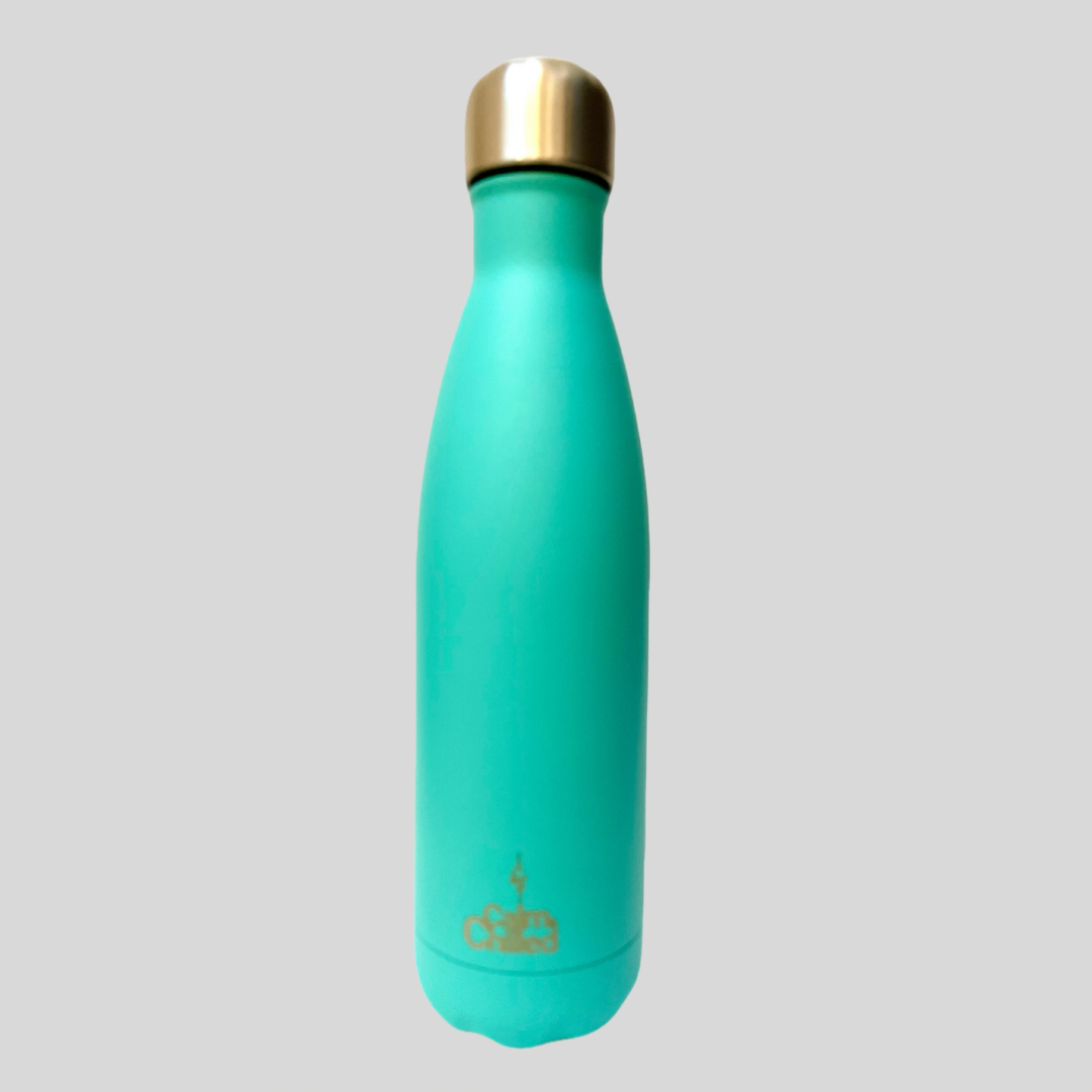 Calm & Chilled Vacuum Insulated 500ml Stainless Steel Water Bottle in Matte Aqua Blue 500ml. Free Personalisation