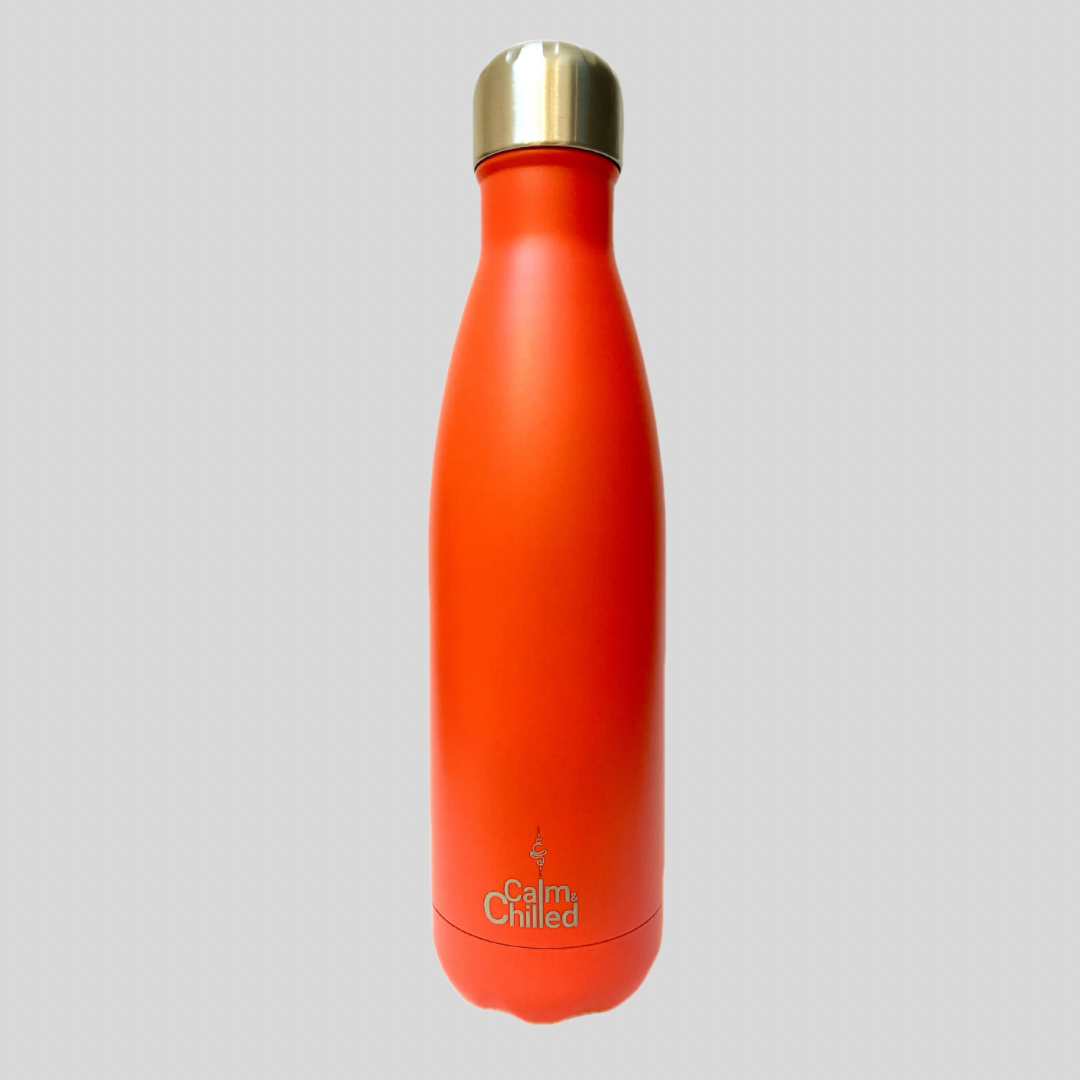 Calm & Chilled Vacuum Insulated 500ml Stainless Steel Water Bottle in Matte Orange 500ml. Free Personalisation