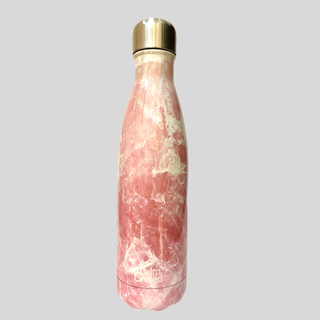 Calm & Chilled Vacuum Insulated 500ml Stainless Steel Water Bottle in Pink Marble Print 500ml. Free Personalisation