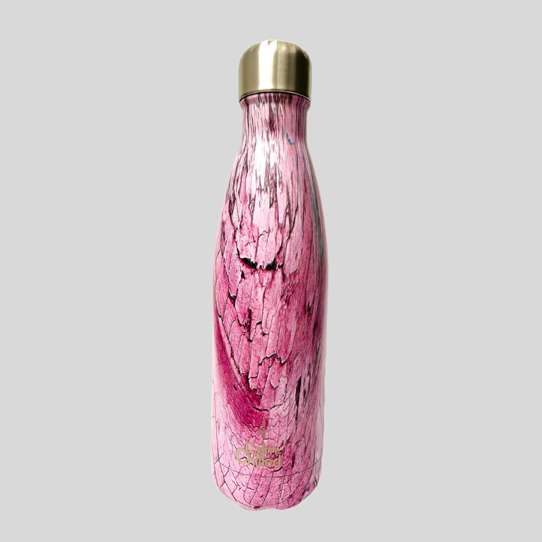 Calm & Chilled Vacuum Insulated 500ml Stainless Steel Water Bottle in Pink Wood Print 500ml. Free Personalisation