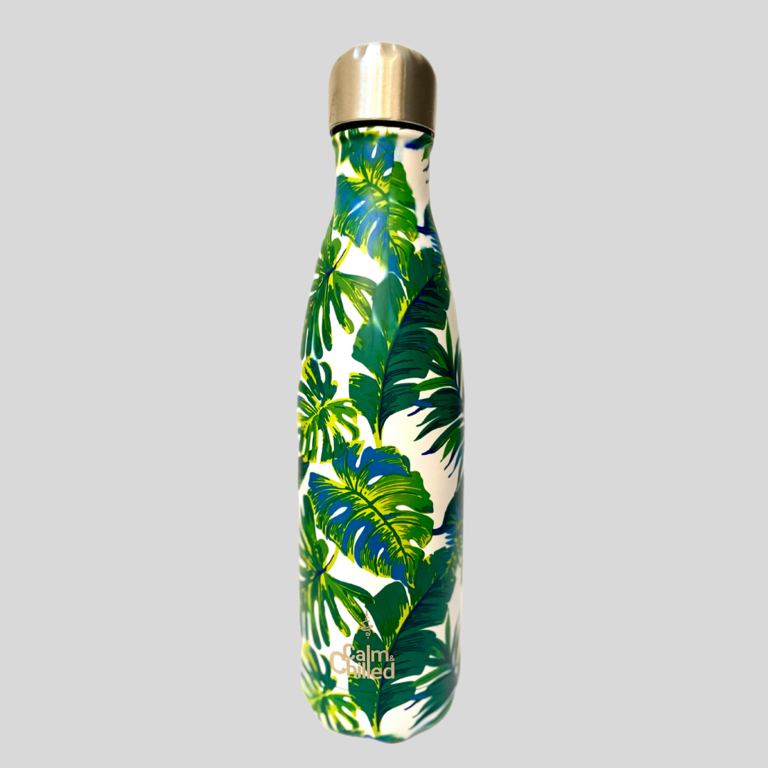 Calm & Chilled Vacuum Insulated 500ml Stainless Steel Water Bottle in Tropical Print 500ml. Free Personalisation