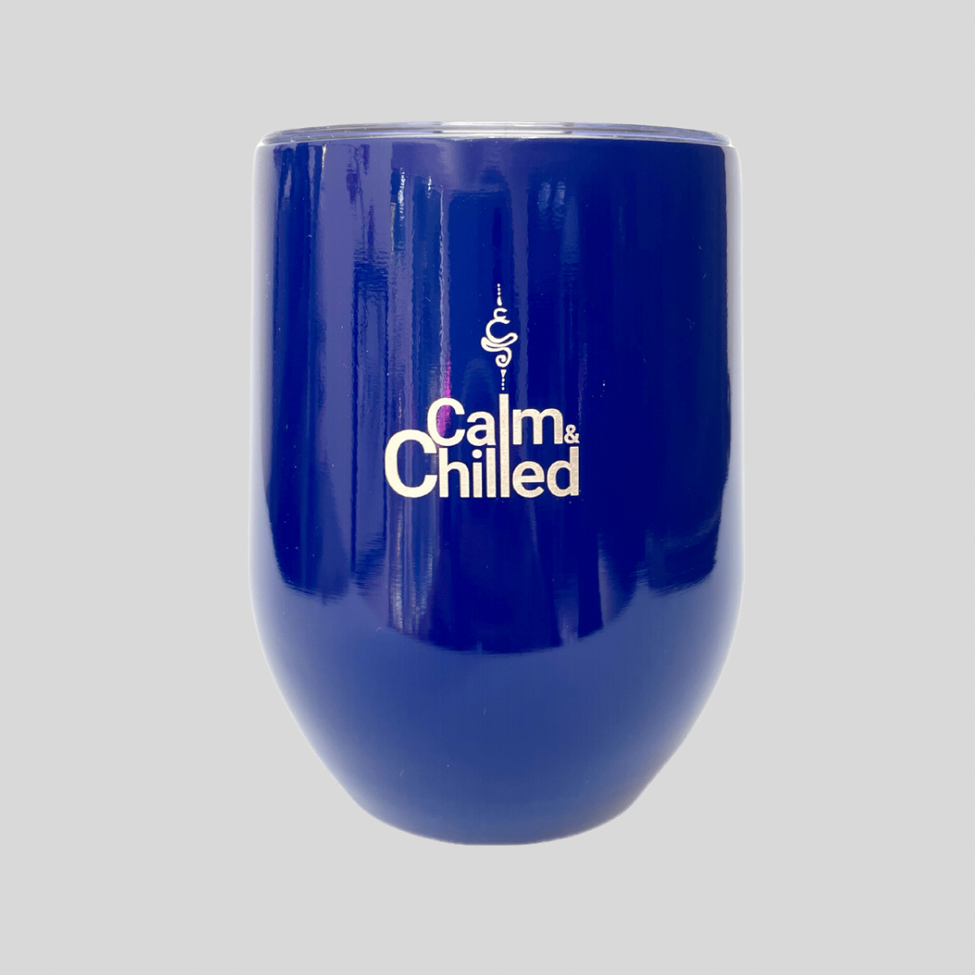 Calm & Chilled Vacuum Insulated Stainless Steel Tumbler in Dark Blue. Free Personalisation!