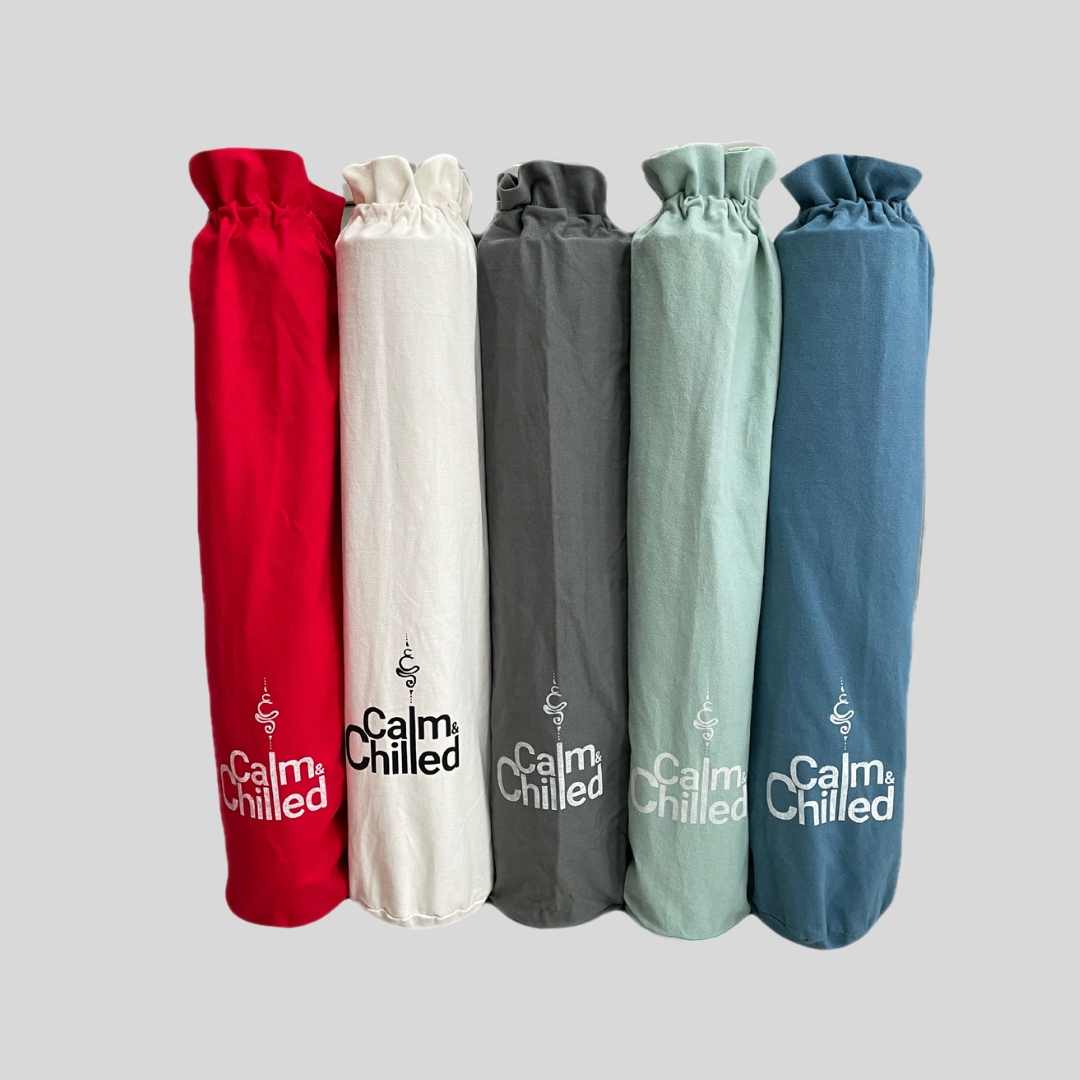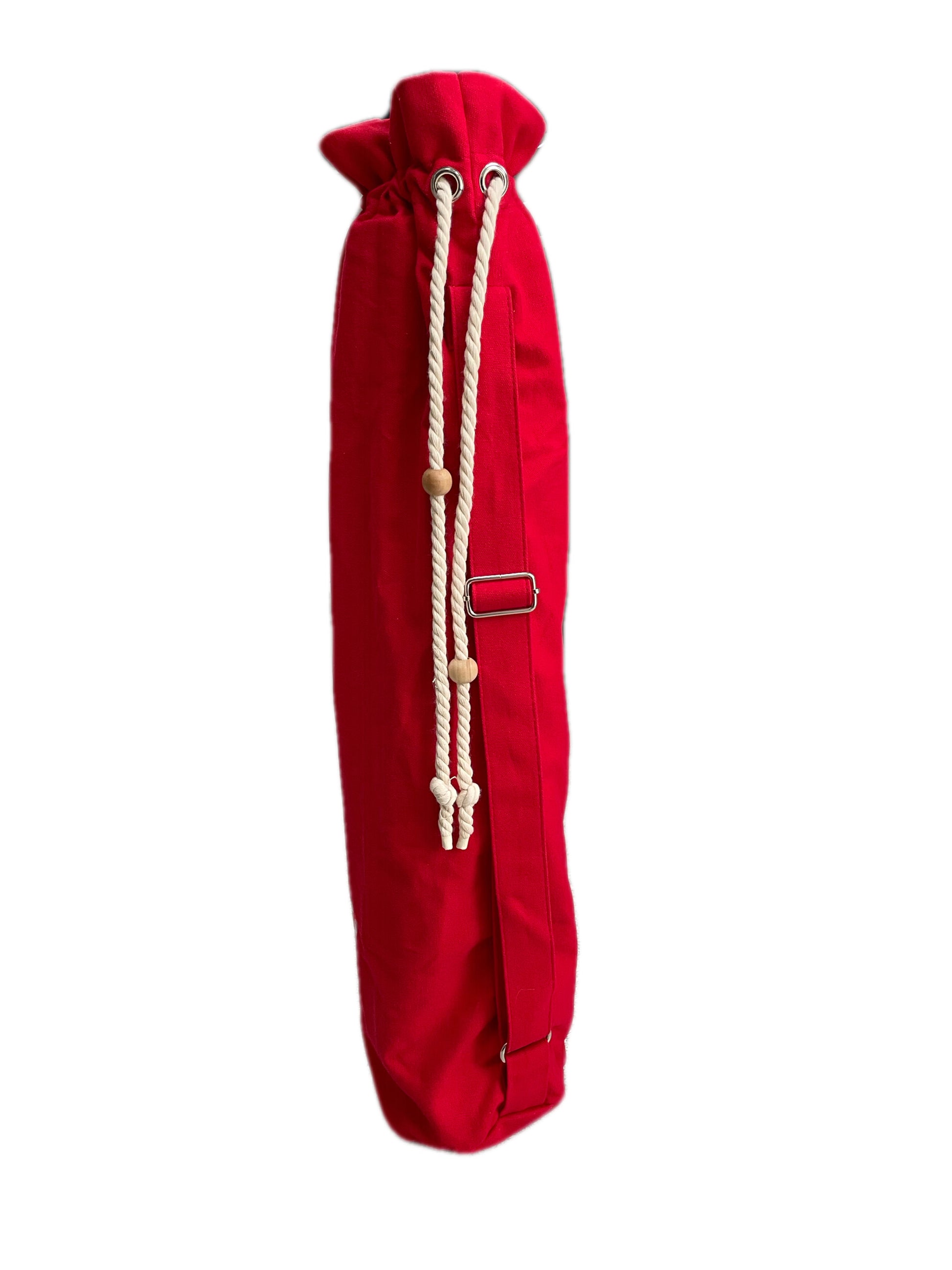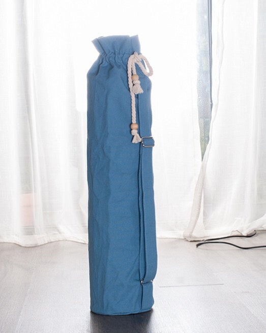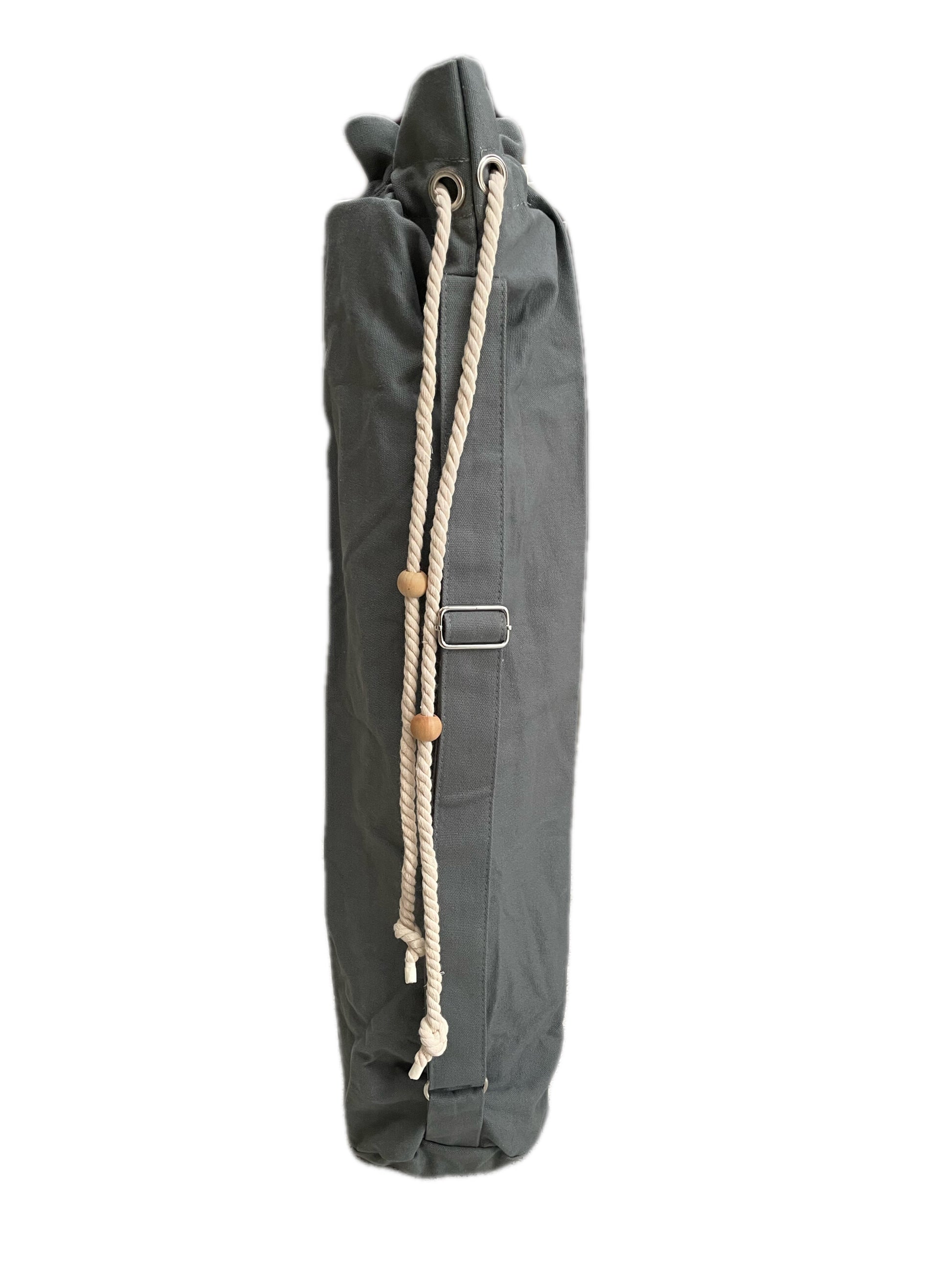 Calm and Chilled drawstring canvas sack available in 5 colours. A large eco-friendly, modern sack bag for your mat with adjustable shoulder strap. Large enough for you to roll a drinks bottle inside your mat too. Beautiful corded drawstring finished with wooden beads make this the natural choice of bag for your mat.