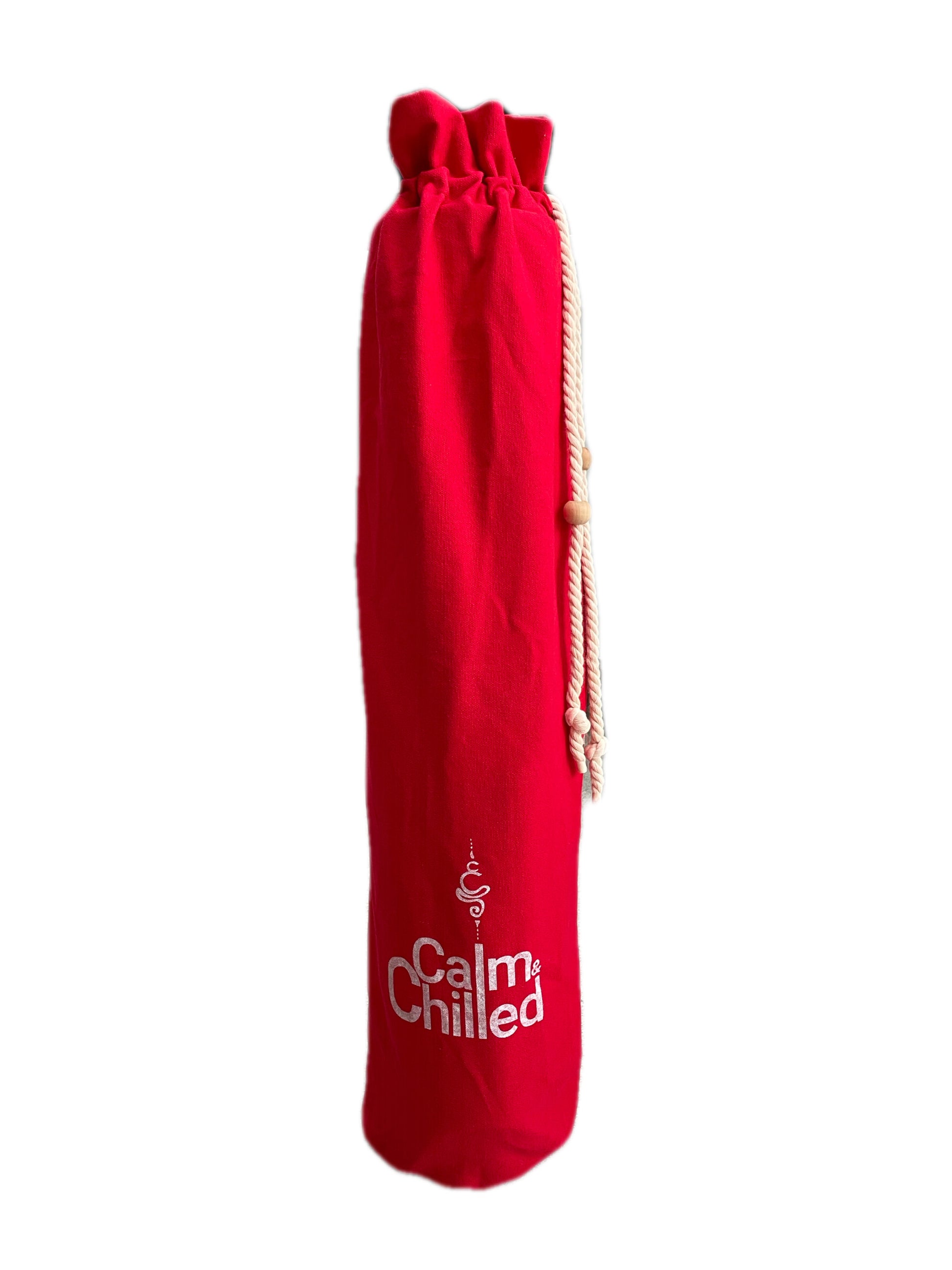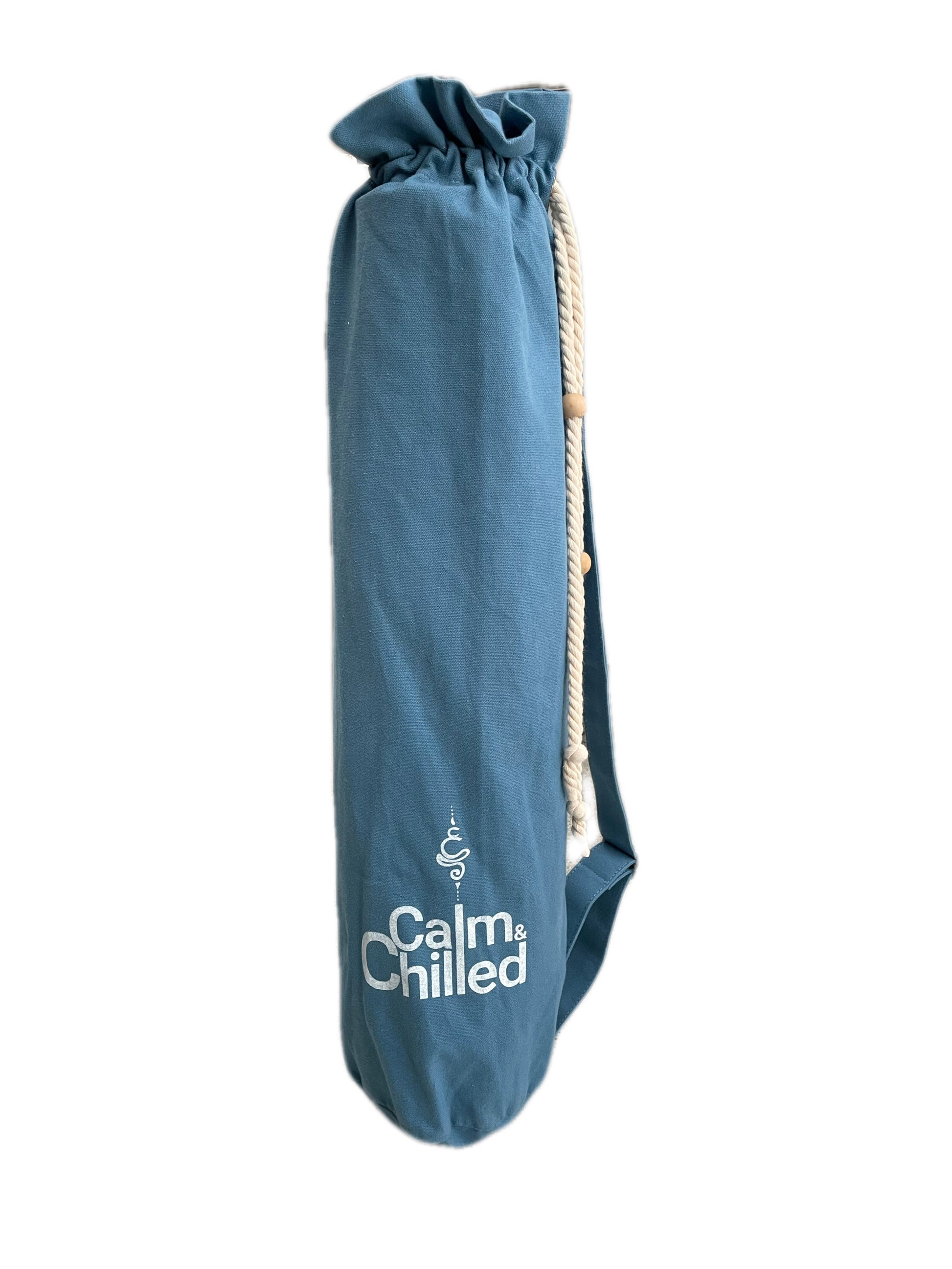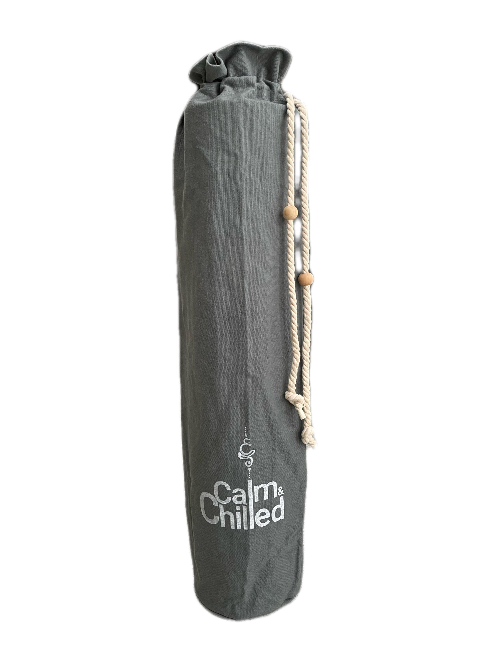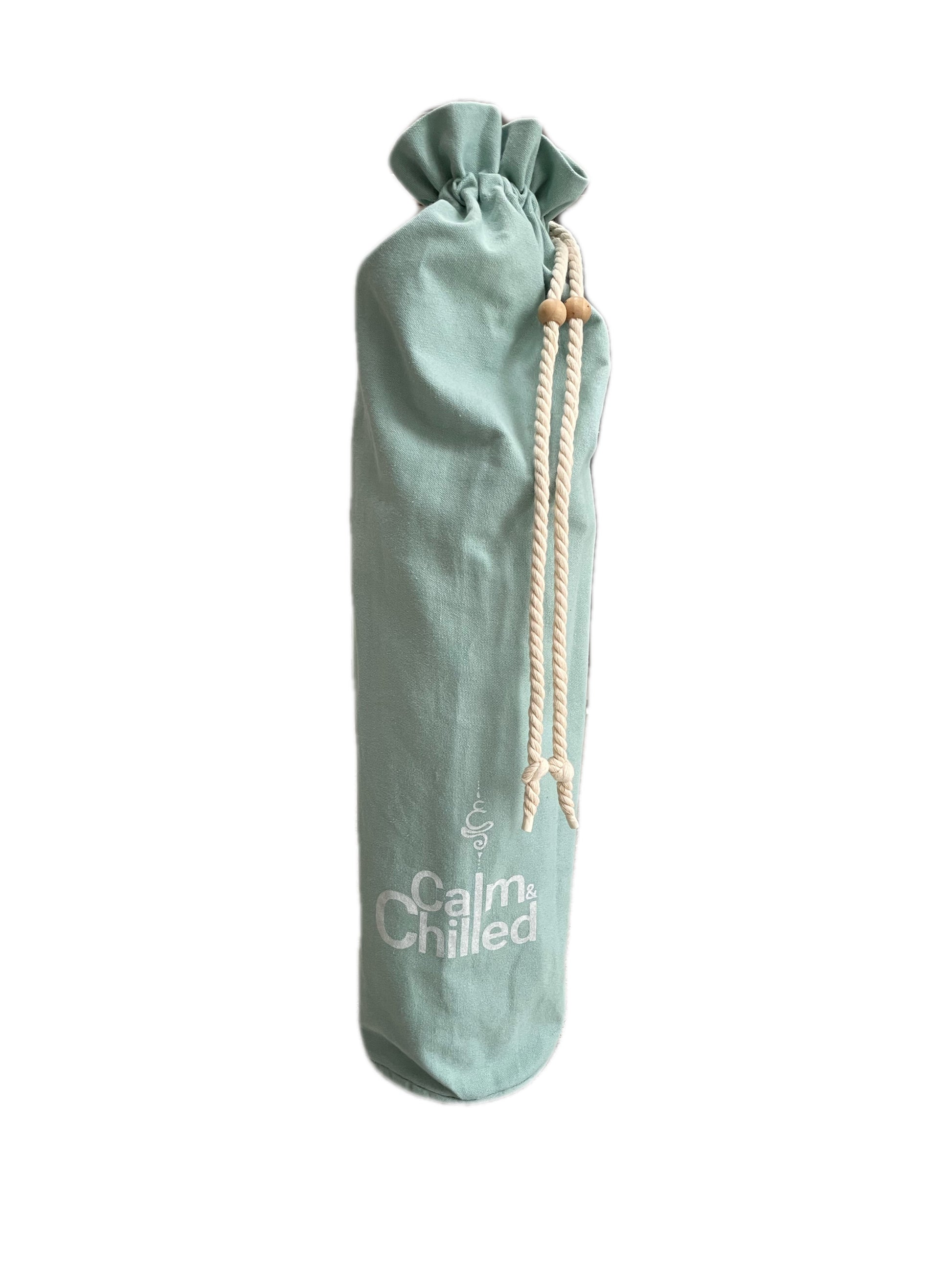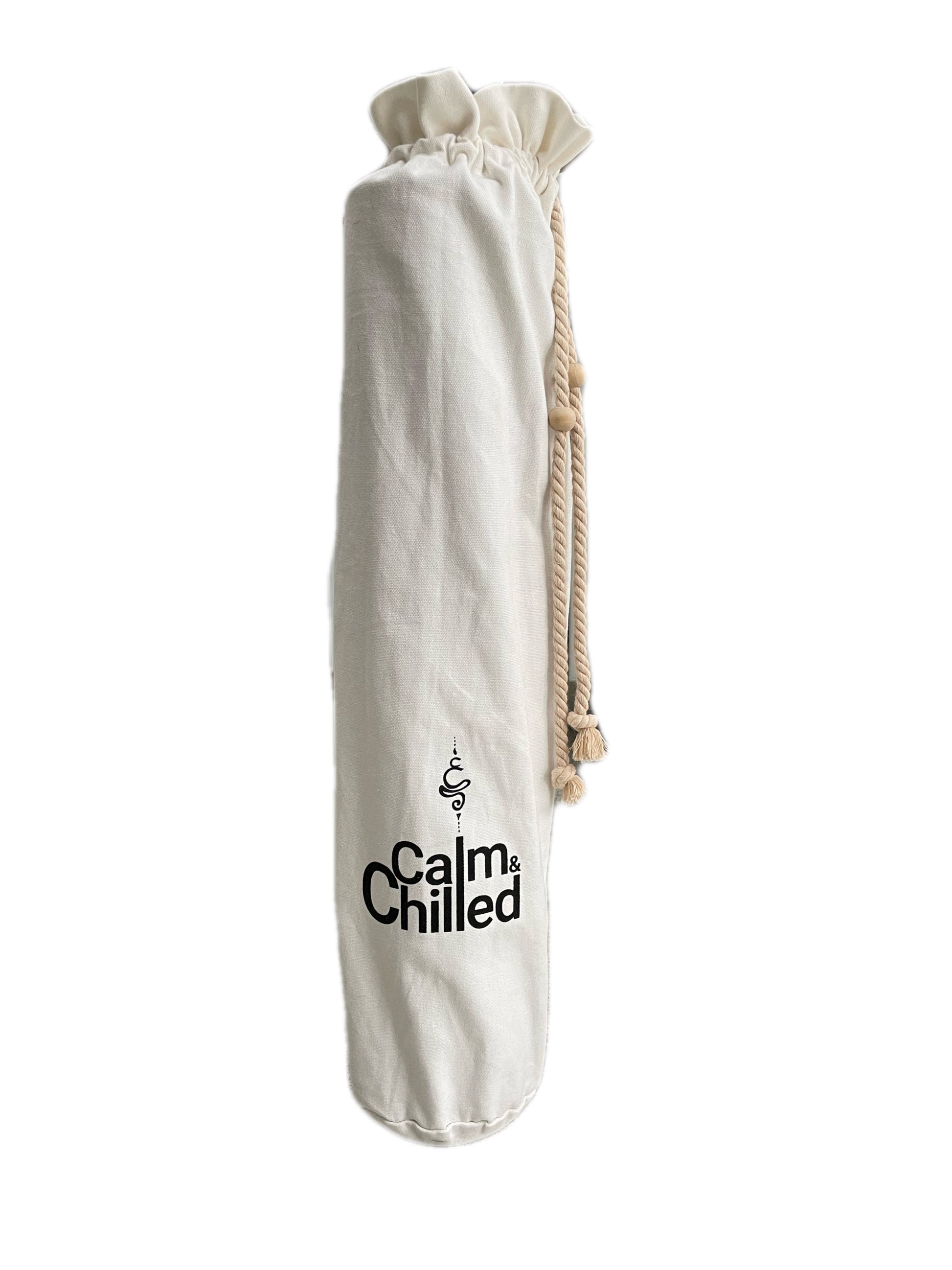 Calm & Chilled Canvas Yoga Mat Bag with Beaded Drawstring Closure.