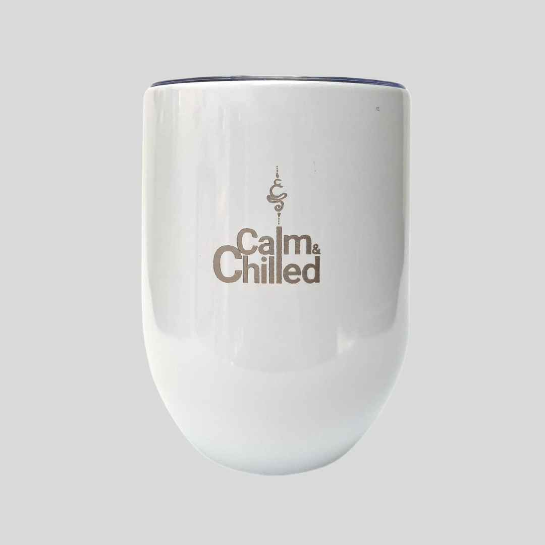 Calm & Chilled Vacuum Insulated Stainless Steel Tumbler in Glossy White. Free Personalisation!